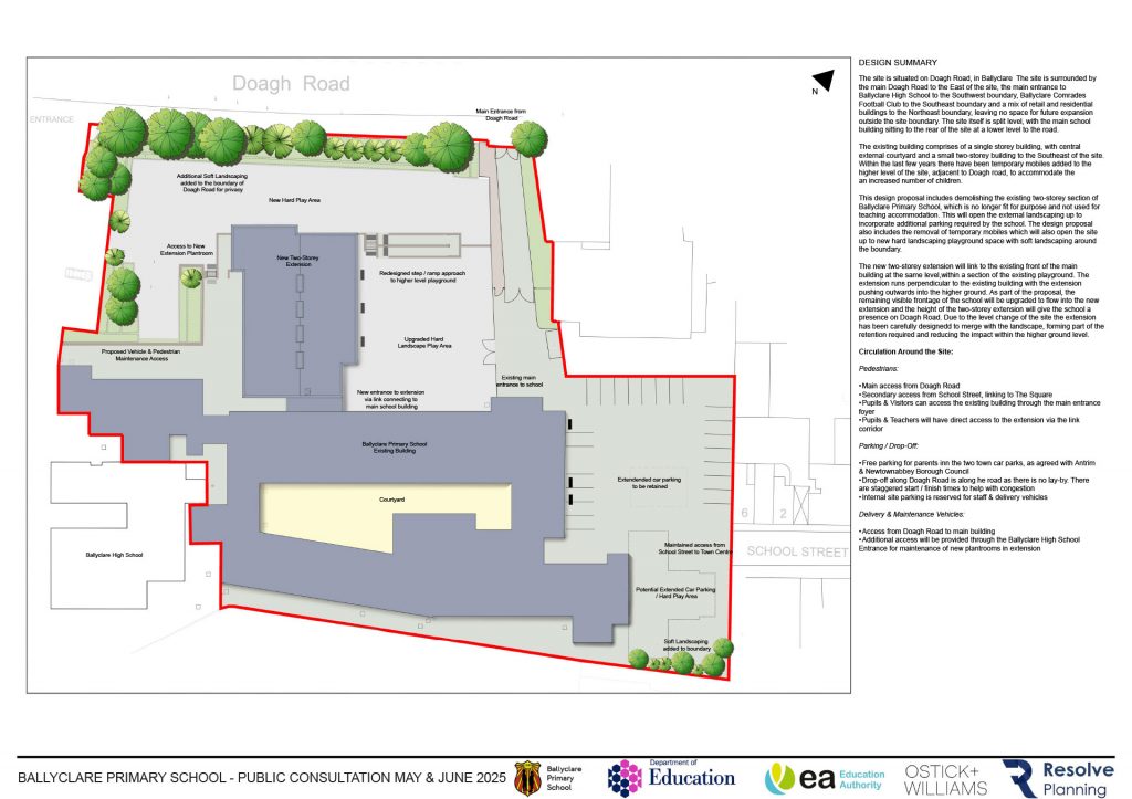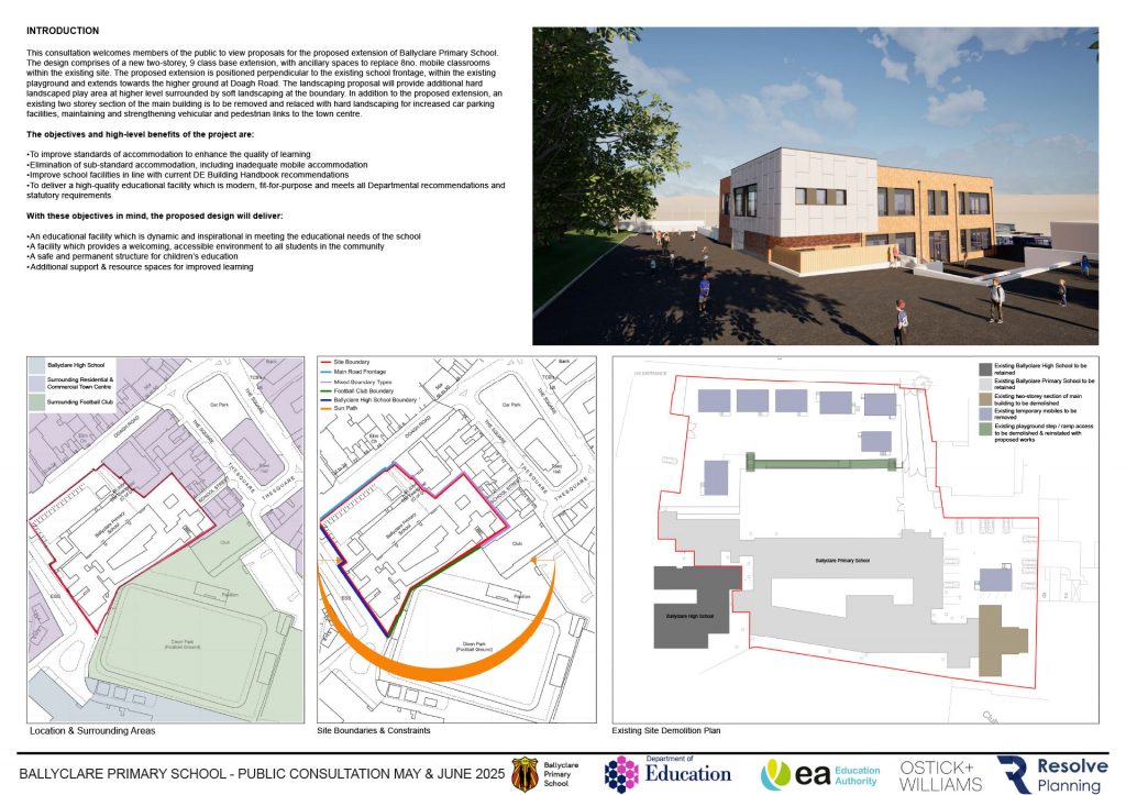 On behalf of Ballyclare Primary School, welcome to the Digital Public Information Event for their plans to provide a new extension to the existing school building at Doagh Road, Ballyclare.